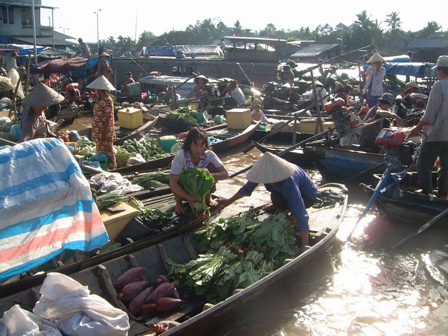 Bùm mua rau ở chợ nổi Phụng Hiệp (ảnh chụp năm 2003)